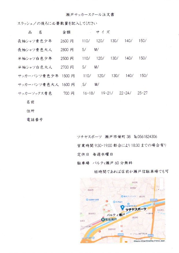 ツチヤスポーツ:瀬戸市栄町 38 Tel 0561-82-4306(協会HPに別添資料あり)